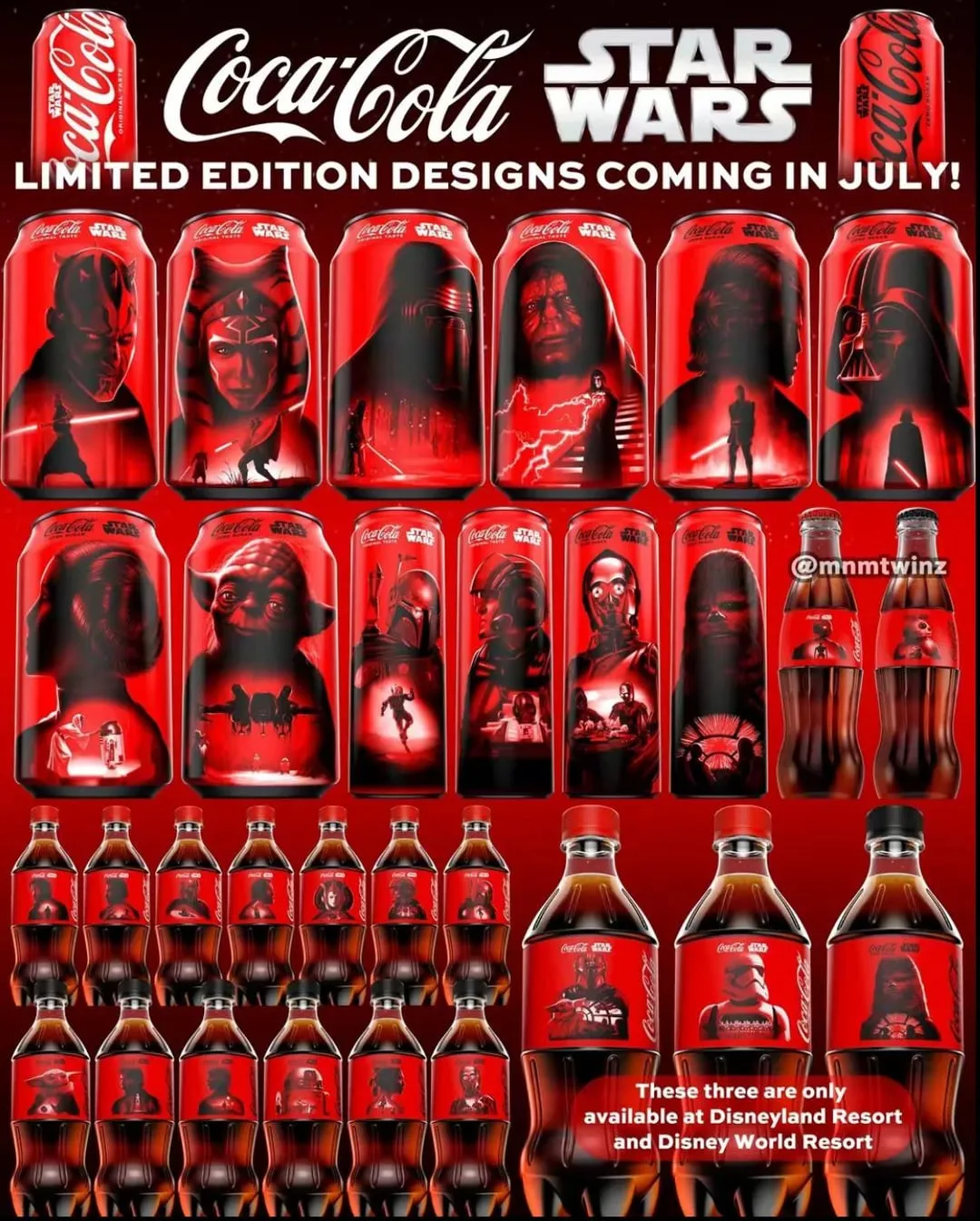 As embalagens se dividem entre Coca-Cola Original e Zero Açúcar. A linha Original traz personagens como Kylo Ren e Ahsoka. Já a Zero Açúcar destaca nomes como Yoda e Anakin. Assim, a coleção equilibra personagens clássicos e recentes da saga.