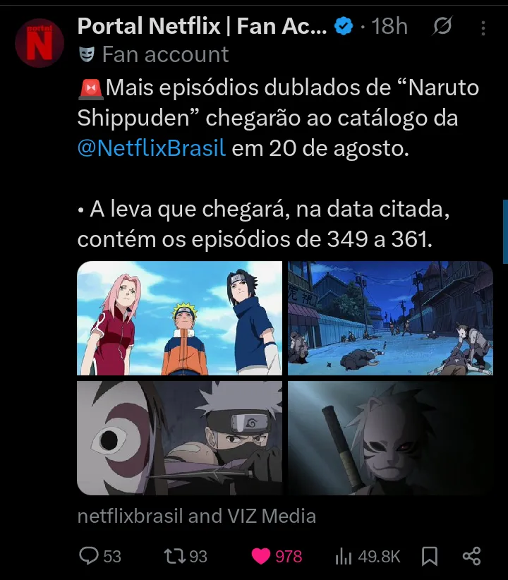 As especulações praticamente acabaram. Após muito tempo de espera, os fãs finalmente poderão voltar a assistir aos episódios dublados de Naruto Shippuden em breve. Recentemente, no X (antigo Twitter), o Portal Netflix publicou que Naruto Shippuden ganhará novos episódios dublados no dia 20 de agosto.